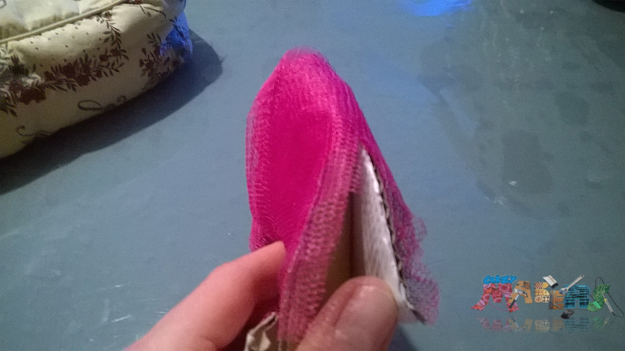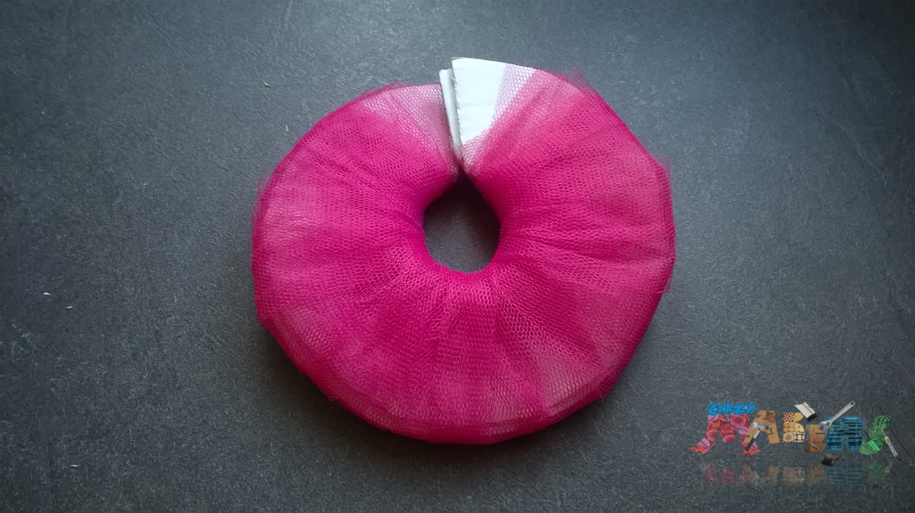A l'aide d'une paire de ciseaux, découpez le tule en glissant la lame entre les deux disques en carton.
