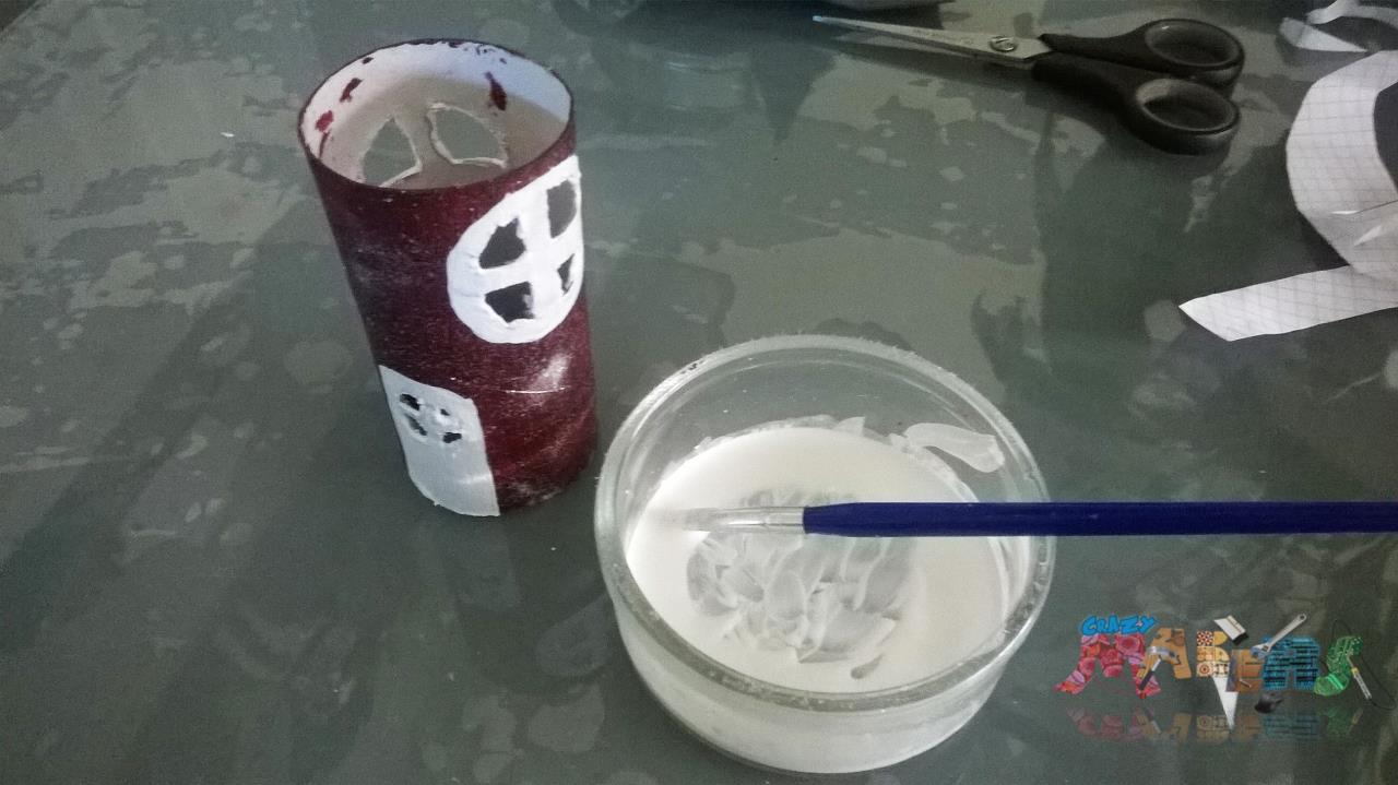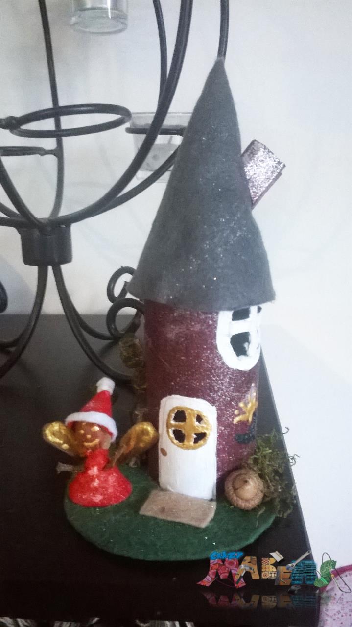 On vient ensuite peindre "les murs" de la maison, j'ai utilisé de l'acrylique marron et j'ai rajouté des petites toûches de peinture argentée.