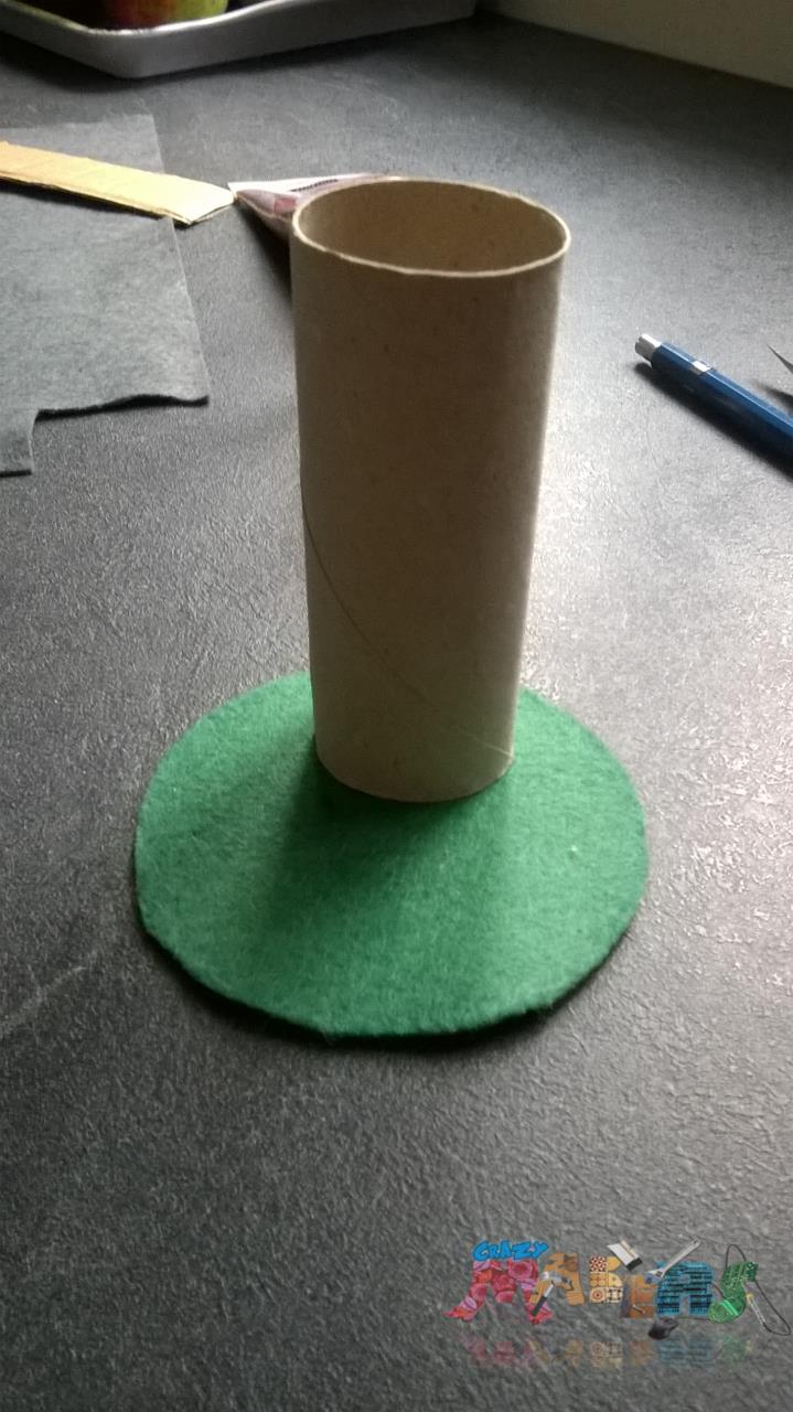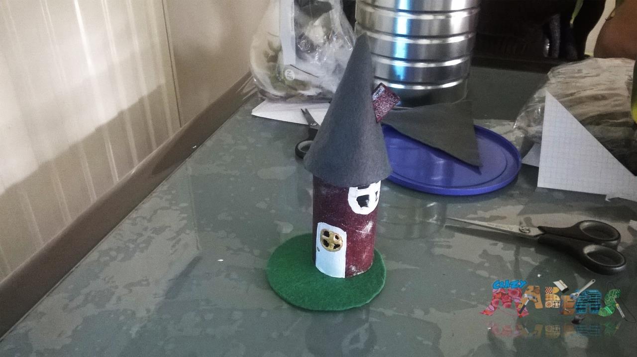 On termine l'assemblage de la maison en la collant sur son socle en feutrine.