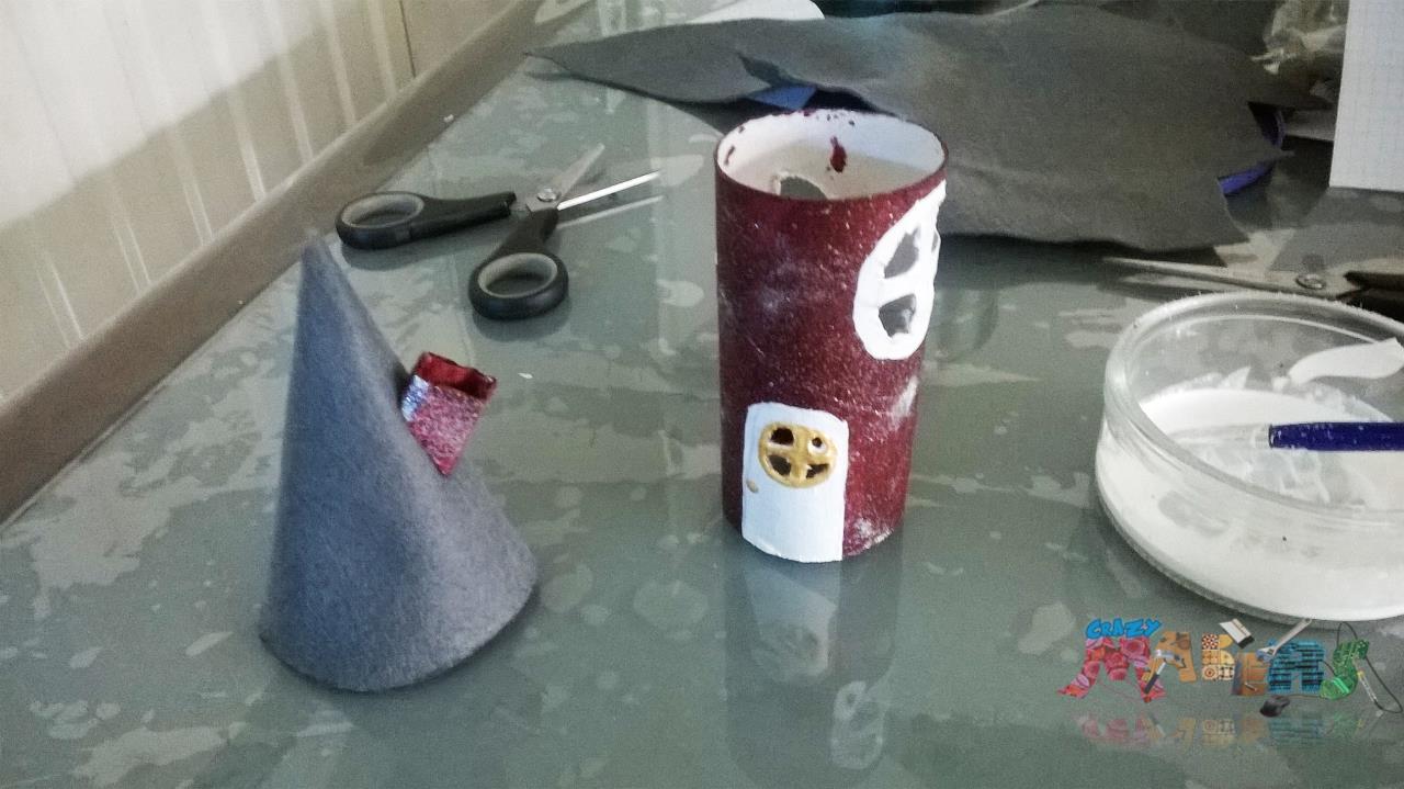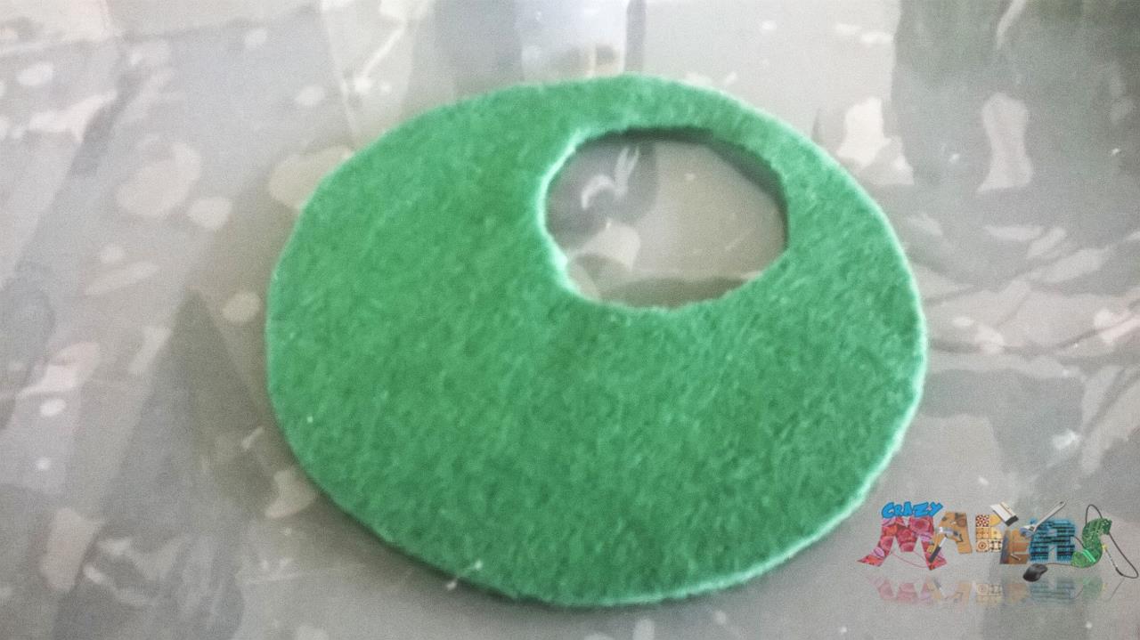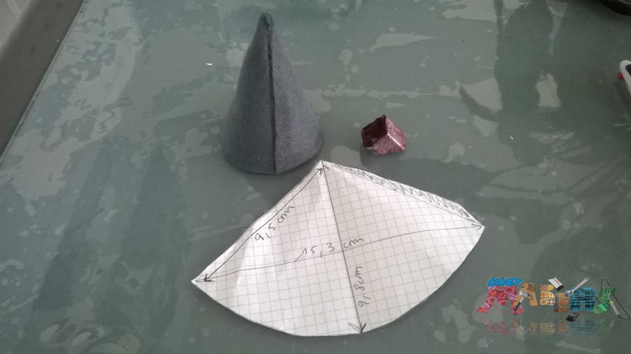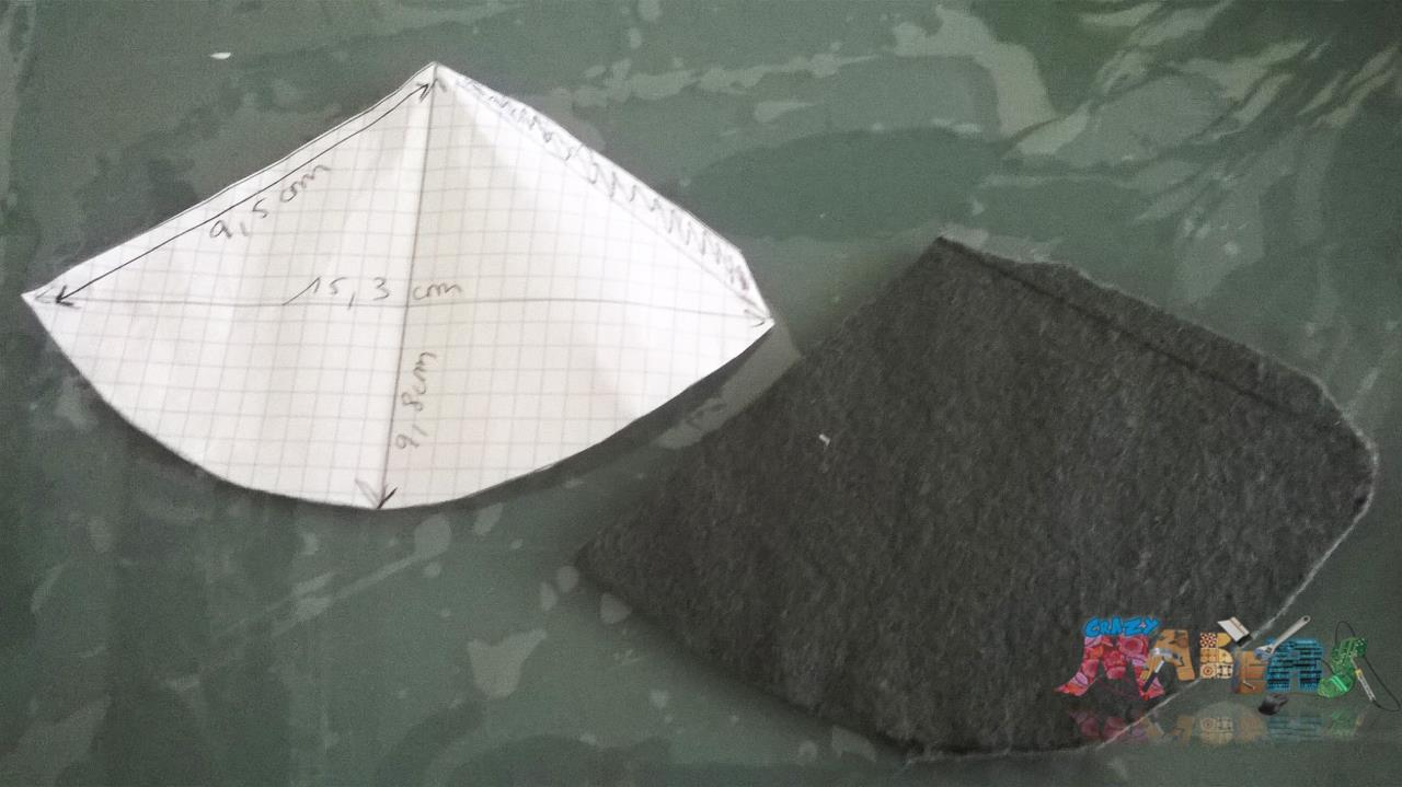 On découpe un patron pour le toit et on découpe la pièce dans de la feutrine.