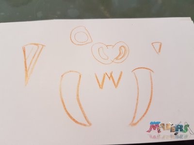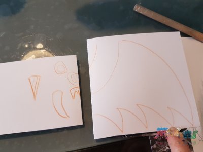 On vient ensuite dessiner les dents, le nez et les yeux... Un seul de chaque suffit. |