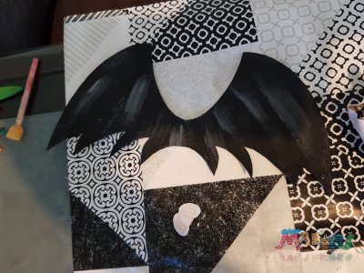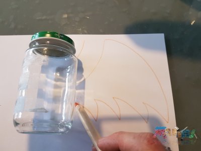 On commence par dessiner la forme d'une des ailes de la chauve-souri en utilisant le pot comme repère de taille.
